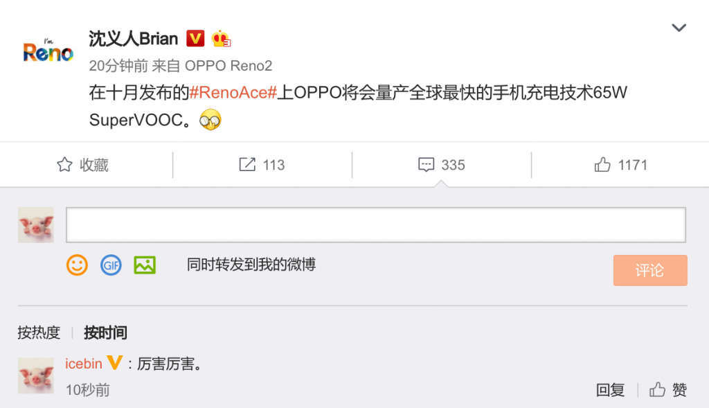 OPPO十月发布的Ace将配置最快充电技术的65W SuperVooc