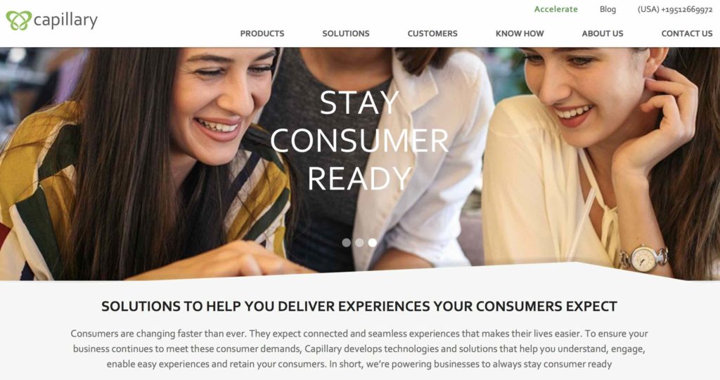 近来宣告取得来自Warburg Pincus和红杉本钱的2000万美元融资。据了解,本轮融资有超越70%的资金将用于加快人工智能及机器学习技能的研制,一起进一步扩展在我国、土耳其和印度尼西亚的商场影响力,方案2018年在北京和广州开设两个办事处。Capillary建立于2008年8月,首要针对大型零售商供给根据云核算的SaaS服务。此外,Capillary即时软件渠道在全球具有30多个付出协作伙伴、10多个物流协作伙伴和70多个服务协作伙伴,如数字营销、网站开发、目录办理、规划服务等。现在,该公司具有300多家企业客户,包含联合利华、沃尔玛、星巴克、必胜客、彪马、盖普、Calvin Klein、Clarks等等。